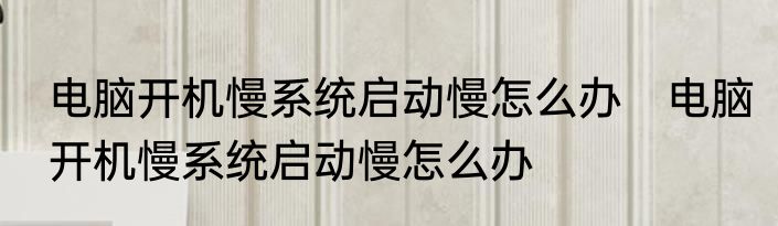 电脑开机慢系统启动慢怎么办?
