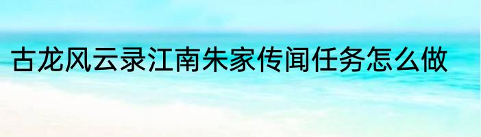 古龙风云录江南朱家传闻任务怎么做