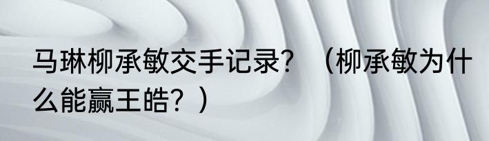 提及马琳柳承敏交手记录?(柳承敏为什么能赢王皓?)的相关内容,许多人不太了解,来看看小节的介绍吧!