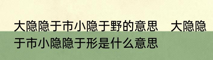 大隐隐于市小隐于野的意思 大隐隐于市小隐隐于形是什么意思