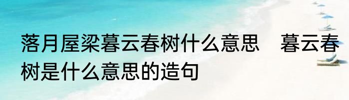 落月屋梁暮云春树什么意思 暮云春树是什么意思的造句
