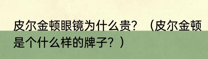 简介提及皮尔金顿眼镜为什么贵?(皮尔金顿是个什么样的牌子?)的相关内容,许多人不太了解,来看看小虎的介绍吧! 皮尔金顿眼镜为什么贵?1、
