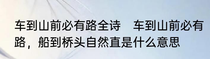 车到山前必有路全诗 车到山前必有路,船到桥头自然直是什么意思