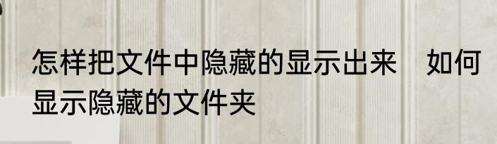 简介怎样把文件中隐藏的显示出来?要显示文件中隐藏的内容,您可以尝试以下方法:首先,确保您的操作系统设置显示隐藏文件和文件夹。在Windows