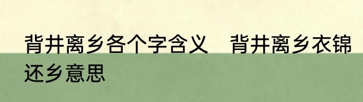 背井离乡各个字含义 背井离乡衣锦还乡意思