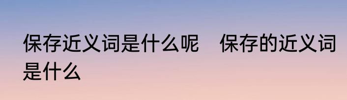 简介保存近义词是什么呢?近义词:保管,保留,“保”,普通话读音为bǎo,“保”的基本含义为看守住,护着不让受损害或丧失,如保卫、保管;引