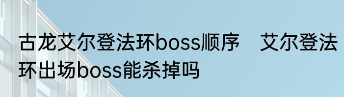 古龙艾尔登法环boss顺序 艾尔登法环出场boss能杀掉吗
