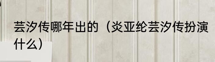 芸汐传哪年出的(炎亚纶芸汐传扮演什么)