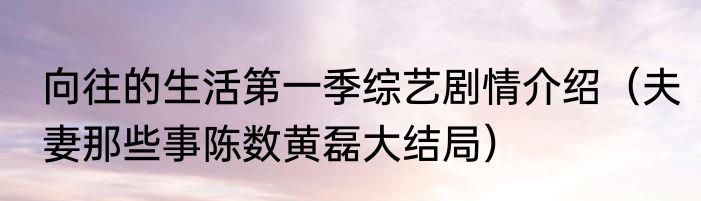 向往的生活第一季综艺剧情介绍(夫妻那些事陈数黄磊大结局)
