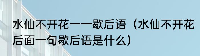 水仙不开花一一歇后语(水仙不开花后面一句歇后语是什么)
