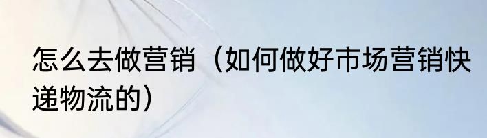怎么去做营销(如何做好市场营销快递物流的)