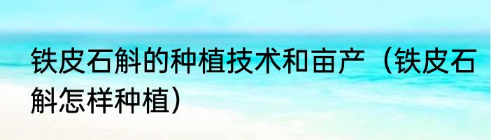 铁皮石斛的种植技术和亩产(铁皮石斛怎样种植)
