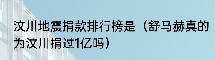 汶川地震捐款排行榜是(舒马赫真的为汶川捐过1亿吗)