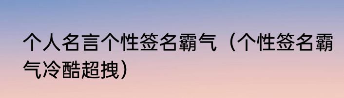 个人名言个性签名霸气(个性签名霸气冷酷超拽)