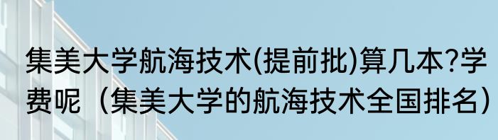 集美大学航海技术(提前批)算几本?学费呢(集美大学的航海技术全国排名)