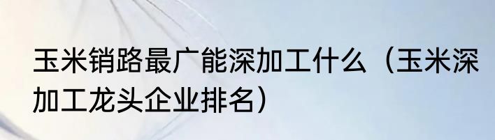 玉米销路最广能深加工什么(玉米深加工龙头企业排名)