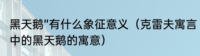 黑天鹅“有什么象征意义(克雷夫寓言中的黑天鹅的寓意)