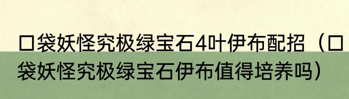 口袋妖怪究极绿宝石4叶伊布配招(口袋妖怪究极绿宝石伊布值得培养吗)