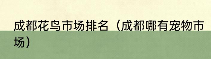 简介成都花鸟市场排名?01青石桥花鸟鱼虫市场>>02黄田坝花鸟市场03青白江花鸟市场04东篱花鸟市场05三联花木鱼鸟市场06新都花鸟宠物市场07光明巷