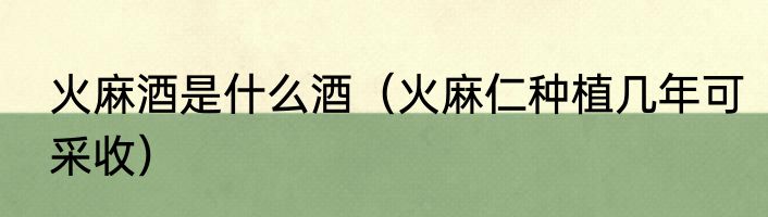火麻酒是什么酒(火麻仁种植几年可采收)