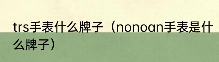 trs手表什么牌子(nonoan手表是什么牌子)