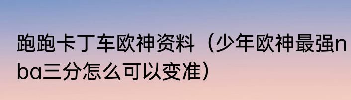跑跑卡丁车欧神资料(少年欧神最强nba三分怎么可以变准)