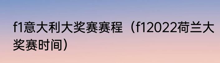 f1意大利大奖赛赛程(f12022荷兰大奖赛时间)