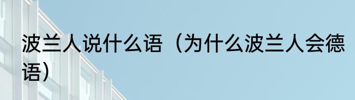 因为波兰和德国本来就是邻国,为了交流交往需要肯定会有一部分波兰人会学习德语。