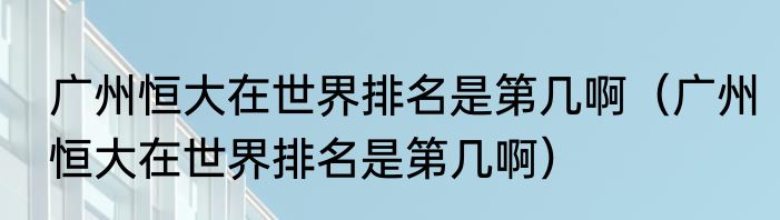 广州恒大在世界排名是第几啊(广州恒大在世界排名是第几啊)
