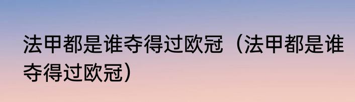 法甲都是谁夺得过欧冠(法甲都是谁夺得过欧冠)