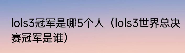 lols3冠军是哪5个人(lols3世界总决赛冠军是谁)