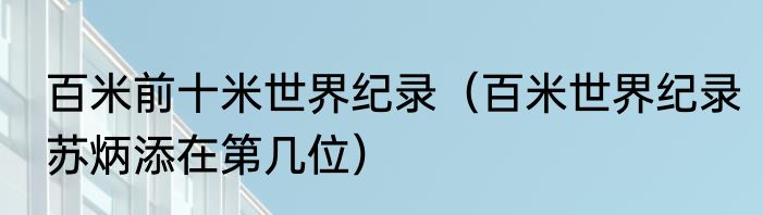 简介百米前十米世界纪录?前十米世界纪录为中国队员苏炳添创造的1秒63。100米项目是所有田径比赛中,影响力最大,关注度最高的比赛项目,历史非