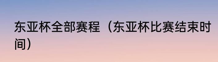 东亚杯全部赛程(东亚杯比赛结束时间)