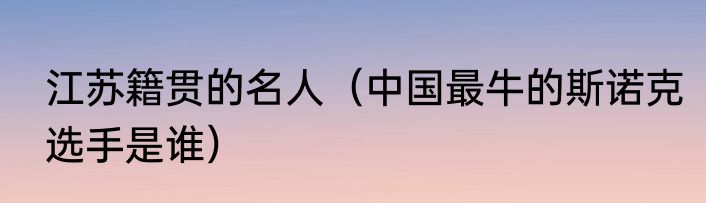 江苏籍贯的名人(中国最牛的斯诺克选手是谁)
