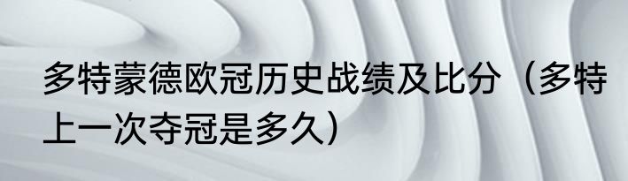 多特蒙德欧冠历史战绩及比分(多特上一次夺冠是多久)
