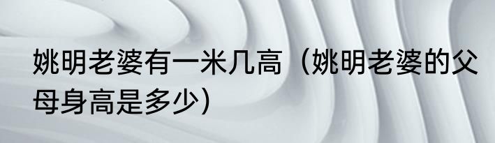姚明老婆有一米几高(姚明老婆的父母身高是多少)