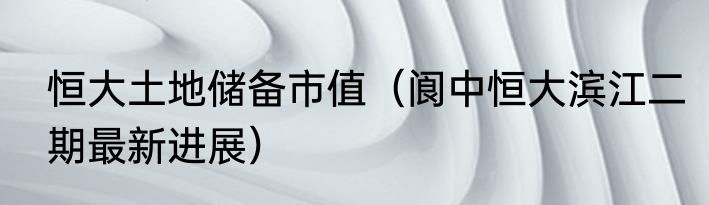 恒大土地储备市值(阆中恒大滨江二期最新进展)