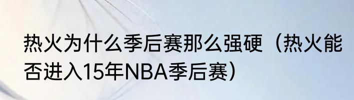 热火为什么季后赛那么强硬(热火能否进入15年NBA季后赛)