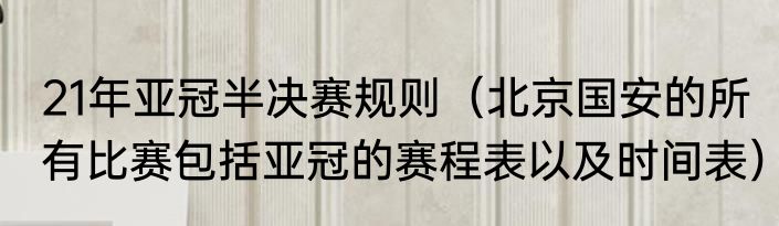 21年亚冠半决赛规则(北京国安的所有比赛包括亚冠的赛程表以及时间表)