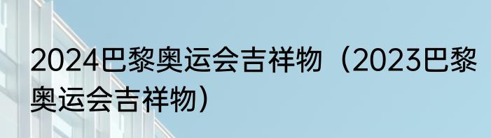 2024巴黎奥运会吉祥物(2023巴黎奥运会吉祥物)