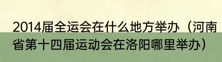 2014届全运会在什么地方举办(河南省第十四届运动会在洛阳哪里举办)