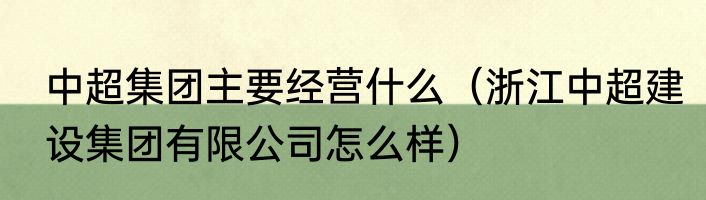 中超集团主要经营什么(浙江中超建设集团有限公司怎么样)
