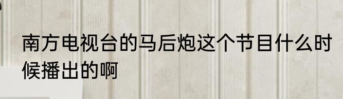 南方电视台的马后炮这个节目什么时候播出的啊