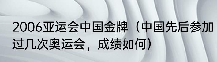 2006亚运会中国金牌(中国先后参加过几次奥运会,成绩如何)