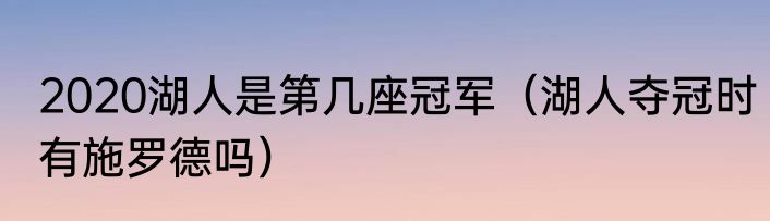 2020湖人是第几座冠军(湖人夺冠时有施罗德吗)