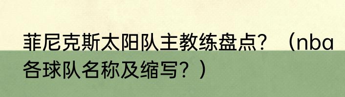 菲尼克斯太阳队主教练盘点?(nba各球队名称及缩写?)