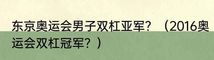 东京奥运会男子双杠亚军?(2016奥运会双杠冠军?)
