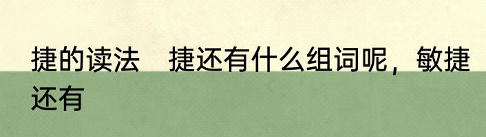 捷的读法 捷还有什么组词呢,敏捷还有
