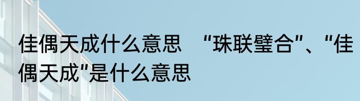 “珠联璧合”、“佳偶天成”是什么意思?
