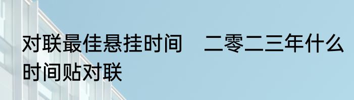 帖对联一般是过了农历小年即可以贴,大部分人家贴对联选择除夕当天上午,2023年最佳贴对联时间是早上5点到七点,因为今年是兔年,大年三十足卯兔日,5点到7点足卯兔时,三兔合一,寓意2023年一切顺意。